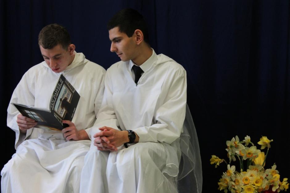 Wielkanocne świętowanie stało się już tradycją naszej szkoły. Tym razem obejrzeliśmy w skupieniu krótkie przedstawienie pt. „Do domu Ojca” przedstawiające fragmenty życia Jana Pawła II. Każda z klas przygotowała mazurka wielkanocnego – jurry miało bardzo trudny wybór! Każdy z nich bowiem wyglądał pięknie i smakowicie… Najbardziej spodobał się mazurek klasy II A SPdP, kolejne miejsca zajęły klasa IIIB SPdP i IIC ZSZ. Smakowały jednak wszystkie podobnie jak i różnorodne świąteczne przysmaki 😉