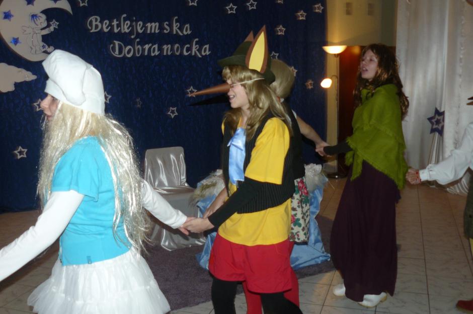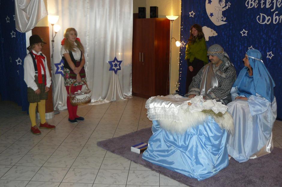 Wieczór wigilijny uświetniło przedstawienie jasełkowe pt ” Betlejemska Dobranocka „.