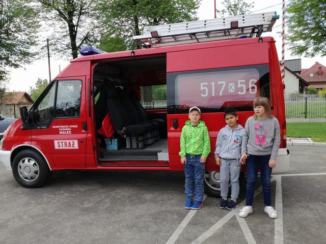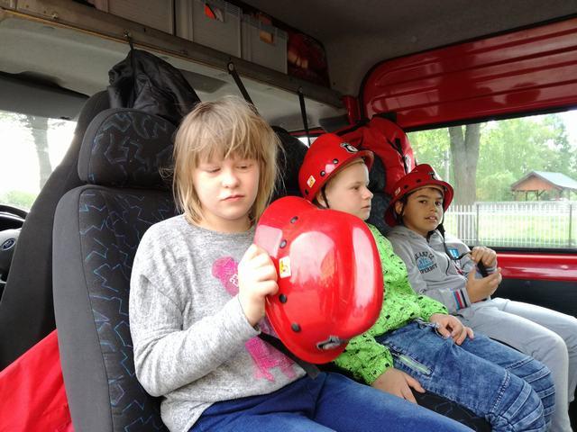 Już samo wejście na plac OSP wzbudziło u dzieci wielki podziw. Atrakcji było mnóstwo. Największą niespodzianką okazała się przejażdżka wozem strażackim po placu. Uczniowie wysłuchali również opowieści o trudnej i odpowiedzialnej pracy strażaka oraz poznali wyposażenie remizy. Uczestnicy wycieczki z wielką ochotą przymierzyli elementy stroju strażaka i pozowali do zdjęć w hełmie „małego strażaka”. Na zakończenie cała klasa otrzymała pamiątkowe naklejki oraz słodki poczęstunek.