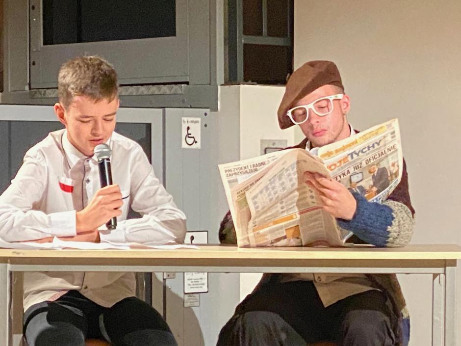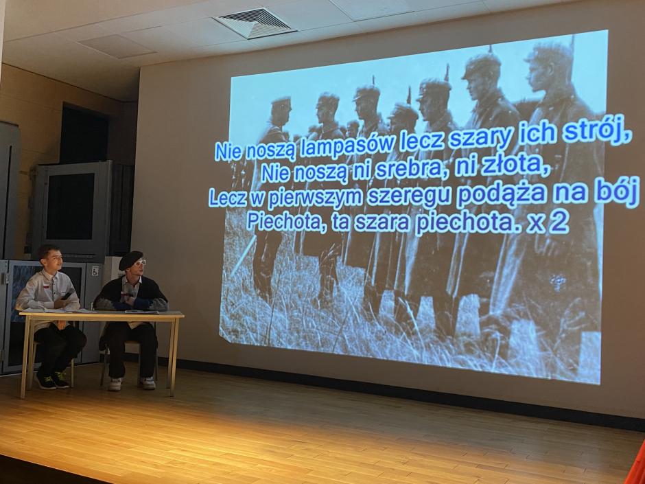 Nasi uczniowie: Justyna, Patrycja, Gabriela, Emilia, Julia, Gabriel, Piotr, Barbara, Jakub, Mateusz przypomnieli swoim kolegom, co działo się w naszym kraju podczas zaborów i ile nasza Ojczyzna wycierpiała nim odzyskała wolność.
