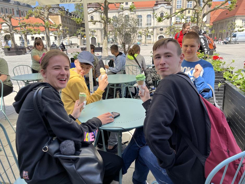 W czasie wycieczki w Pszczynie udaliśmy się również do Zagrody Żubrów, później na spacer oraz na pyszne przekąski. Rozkoszowaliśmy się pączkami, lodami, zapiekankami i kawą. W słońcu odpoczęliśmy na pszczyńskim rynku, a niestety krótką drogę powrotną, umilił wesołymi piosenkami pan kierowca. Jemu oraz organizatorom serdecznie dziękujemy.