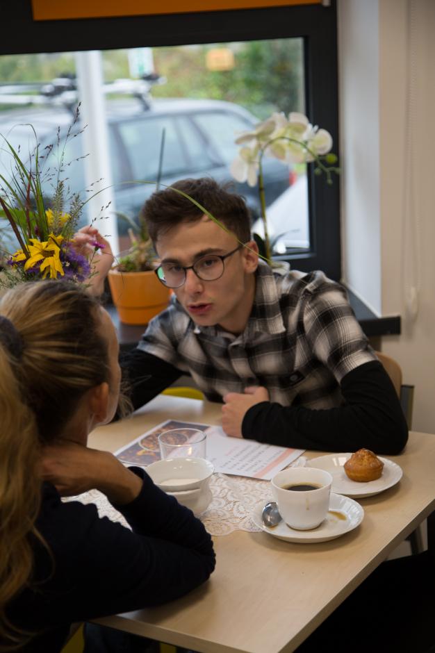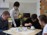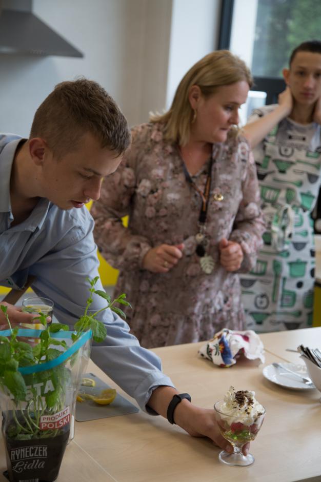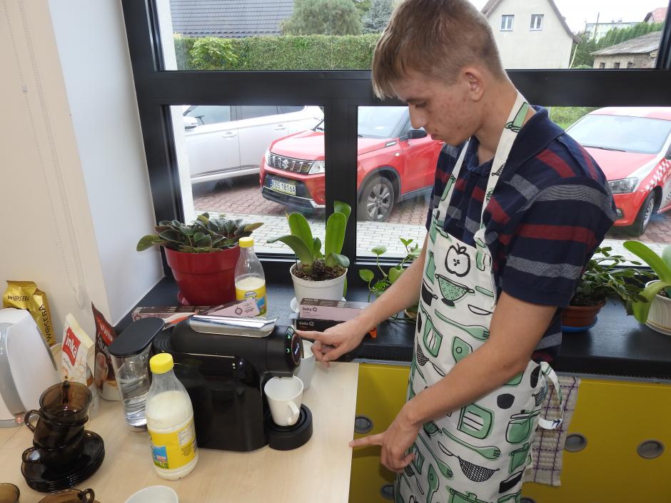 Długo wyczekiwane otwarcie szkolnej kawiarenki było pysznym pomysłem. Mogliśmy kosztować różnych ciast, deserów i babeczek. Była kawa z ekspresu, herbata, woda… do wyboru, do koloru. Klimatu dodawały kwiaty w wazonach i kolorowe menu. Obsługa może być pewna, że praktyka kelnerska ułatwi poszukiwanie pracy w przyszłości. Kelnerzy oraz bariści ze Szkoły Przysposabiającej do Pracy i Branżowej stanęli na wysokości zadania. Bardzo Wam dziękujemy.