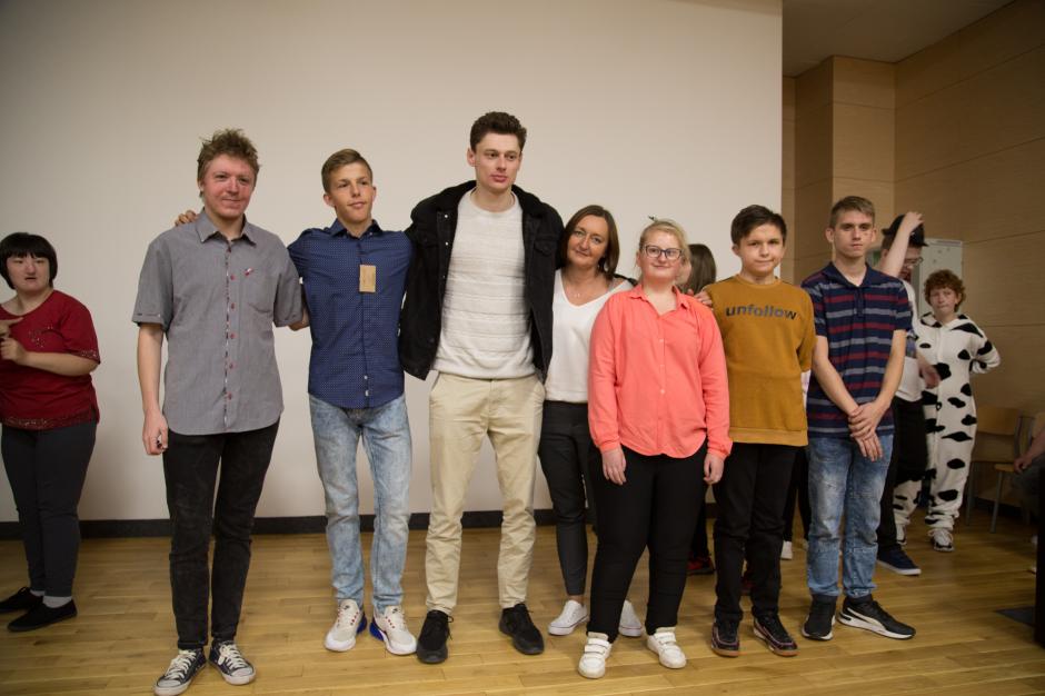 30 września obchodziliśmy w naszej szkole Dzień Chłopaka. Cóż to był za dzień! Czekały na nas bardzo ciekawe atrakcje. W sumie było ich aż cztery i korzystaliśmy z nich podzieleni na grupy. Tego dnia odbyło się spotkanie w auli, szkolna kawiarenka, rozgrywki sportowe i dyskoteka. Gościem specjalnym, który do nas przyjechał, był DAWID WOSKANIAN – zwycięzca VIII edycji programu telewizyjnego TOP MODEL. Dawid jest niezwykle serdecznym, otwartym, pełnym empatii i szacunku młodym człowiekiem, który wiele nas nauczył. Pokazał jak profesjonalnie chodzić po wybiegu dla modeli i jak pozować do zdjęć. Przede wszystkim jednak udzielił nam kilku życiowych rad. Powiedział, że w życiu ważna jest akceptacja tego, kim się jest, co w ustach osoby chorej na zespół Tourette’a brzmi bardzo wiarygodnie. Dawid zaleca również aktywność fizyczną, twierdząc, że wysiłek i uprawianie sportu pozwala zachować sprawność, dobrą kondycję i wewnętrzną równowagę. Podarowanie mu medalu SUPER CHŁOPAKA było więc czystą formalnością, bo Dawid jest naprawdę super. Życzymy mu dalszych sukcesów w modelingu i spełnienia skrytych marzeń.