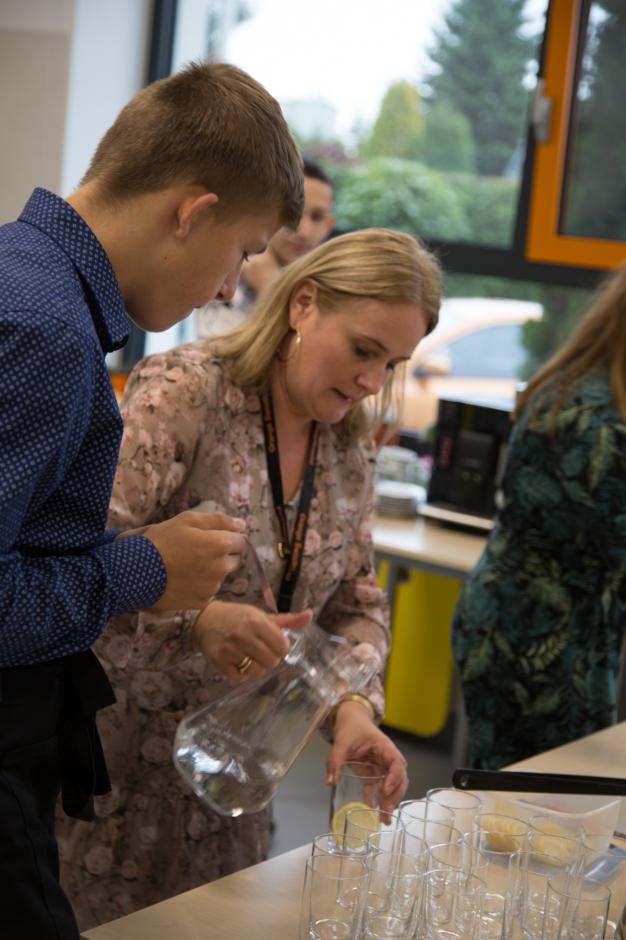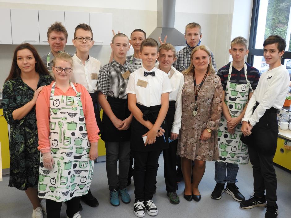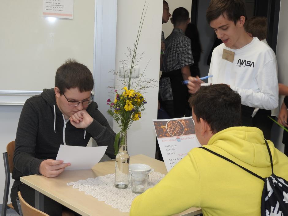 Długo wyczekiwane otwarcie szkolnej kawiarenki było pysznym pomysłem. Mogliśmy kosztować różnych ciast, deserów i babeczek. Była kawa z ekspresu, herbata, woda… do wyboru, do koloru. Klimatu dodawały kwiaty w wazonach i kolorowe menu. Obsługa może być pewna, że praktyka kelnerska ułatwi poszukiwanie pracy w przyszłości. Kelnerzy oraz bariści ze Szkoły Przysposabiającej do Pracy i Branżowej stanęli na wysokości zadania. Bardzo Wam dziękujemy.