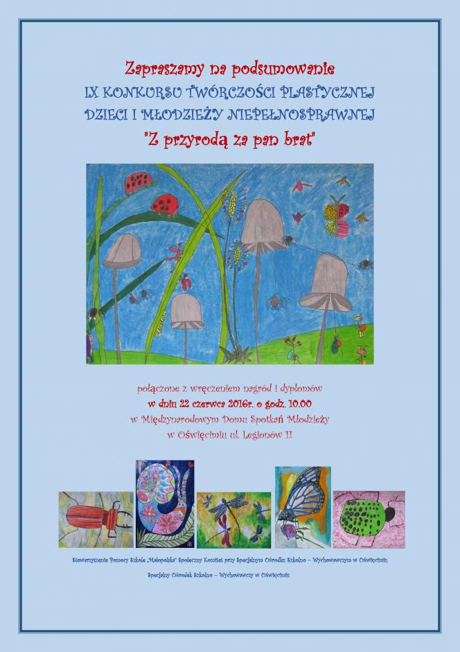 Miło nam poinformować, że w dniu 9 czerwca 2016r. komisja konkursowa wyłoniła laureatów i osoby wyróżnione w 9 edycji Konkursu Twórczości Plastycznej Dzieci i Młodzieży Niepełnosprawnej „Z przyrodą za pan brat – Mikrokosmos.”