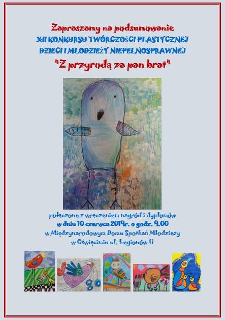Miło nam poinformować, że w dniu 30 maja 2019 r. komisja konkursowa wyłoniła laureatów i osoby wyróżnione w XII edycji Konkursu Twórczości Plastycznej Dzieci i Młodzieży Niepełnosprawnej „Z przyrodą za pan brat – Ptaki cudaki”.
