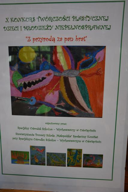 24 maja w Międzynarodowym Domu Spotkań Młodzieży w Oświęcimiu odbyło się uroczyste podsumowanie X edycji Konkursu Plastycznego Dzieci i Młodzieży Niepełnosprawnej „Z przyrodą za pan brat”. Wernisaż uświetnili swoją obecnością zaproszeni goście, rodzice oraz młodzi artyści. Wychowankowie internatu SOSW zaprezentowali przedstawienie tematycznie nawiązujące do tematu przewodniego konkursu – świata dinozaurów. Młodzi artyści otrzymali dyplomy i nagrody.