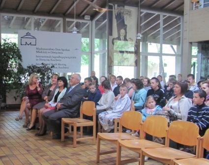 Leszek Szuster – Dyrektor Międzynarodowego Domu Spotkań Młodzieży w Oświęcimiu oraz młodzi artyści – laureaci konkursu, którzy przybyli na wernisaż wraz ze swoimi opiekunami, pedagogami oraz rodzicami.
