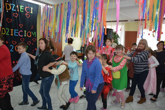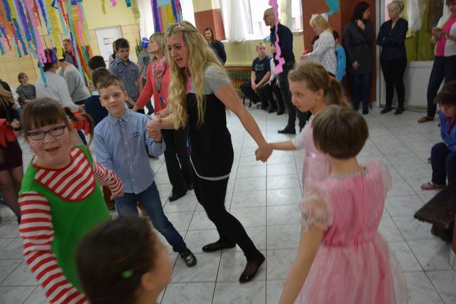W tym roku już po raz dziewiętnasty uczniowie Szkoły Podstawowej bawili się na zabawie karnawałowej zorganizowanej przez Gimnazjum nr 3. Tym razem organizatorzy przygotowali bal w naszej szkole. W karnawałowy klimat wprowadziły nas dekoracje przygotowane przez organizatorów. Wolontariusze, jak co roku z dużym zaangażowaniem włączyli się w przygotowania i wspólną zabawę z dziećmi. Dobór muzyki sprawił, że wszyscy wspaniale się bawili. Rodzice i nauczyciele zadbali o piękne stroje dzieci. Na balu można było spotkać księżniczki, wróżki, klaunów oraz superbohaterów. Zgodnie z tradycją, organizatorzy przygotowali też słodki poczęstunek, a w związku z zbliżającym się Tłustym Czwartkiem, nie mogło zabraknąć pączków i innych słodkości.