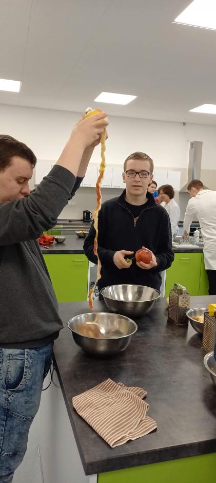 W tym roku w naszej szkole obchody Światowego Dnia Zdrowia zorganizowano 5 kwietnia. Wzięli w nich udział uczniowie Branżowej Szkoły I Stopnia oraz Przysposabiającej do Pracy. Spędzili oni ten dzień aktywnie i zdrowo spacerując na świeżym powietrzu oraz uczestnicząc w tanecznej przerwie. Na każdym piętrze widać było roztańczoną w rytm Jerusalemy młodzież. Pod koniec dnia przyszedł czas na regenerację, czyli zdrowy posiłek. Ponieważ tegorocznym hasłem obchodów Światowego Dnia Zdrowia było: Nasza planeta, nasze zdrowie,  uczniowie klasy IIIc i IIIb (kucharz i hotelarz) przygotowali kisiel z naturalnych składników, tj. świeżych jabłek, a część z nich pochodziła od sadownika z Sandomierza. Zdrowy deser podali w jednorazowych kubeczkach eco. Zwieńczeniem dnia były piękne, papierowe żonkile, które są symbolem zdrowia. Zostały one podarowane wszystkim uczniom i nauczycielom.