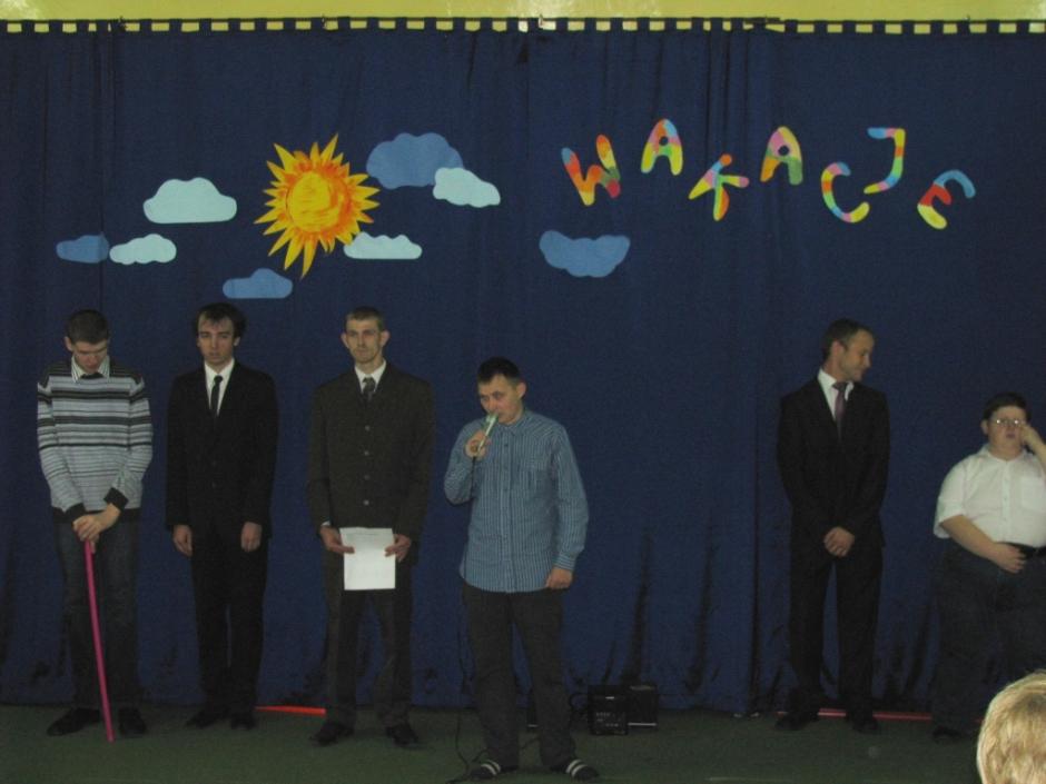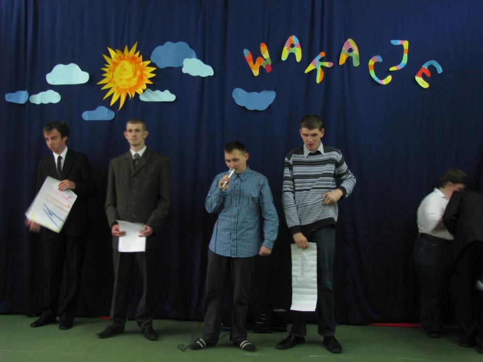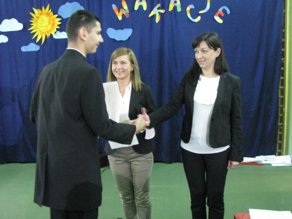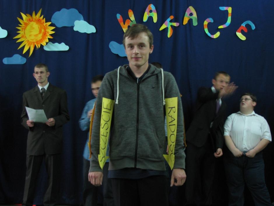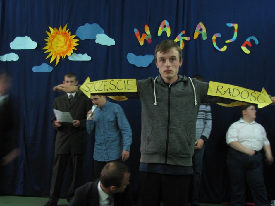28 czerwca 2013r. miało miejsce uroczyste zakończenie roku szkolnego 2012/2013. To dla wszystkich wyczekiwany dzień. W części artystycznej wprowadzeni zostaliśmy w wakacyjny nastrój dzięki brawurowemu wykonaniu piosenek z repertuaru Starego Dobrego Małżeństwa. W drugiej części rozdane zostały świadectwa, były podziękowania i życzenia udanych i bezpiecznych wakacji. I wreszcie upragnione WAKACJE smiley