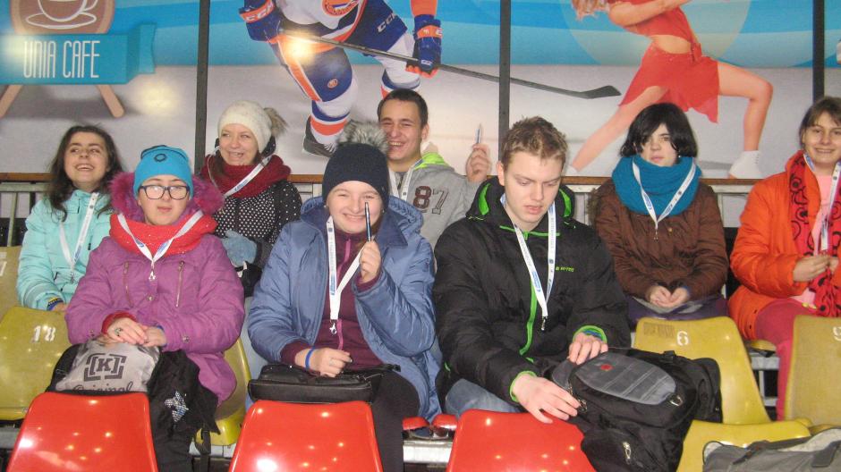 W ramach zajęć sportowo-rekreacyjnych p.S.Magiera zabrała klasy I a i I b SPdP na lodowisko. Celem wizyty było poznanie sportów zimowych takich jak łyżwiarstwo figurowe i hokej na lodzie. Zwiedziliśmy całe lodowisko zaczynając od kas, wypożyczalni łyżew, trybun, a kończąc na szatni hokeistów, do której zaprosił nas trener drużyny Juniorów i pokazał nam sprzęt hokejowy. Następnie obejrzeliśmy trening drużyny seniorów Unii Oświęcim. Byliśmy bardzo zaskoczeni, gdy otrzymaliśmy zgodę na zrobienie sobie pamiątkowego zdjęcia z drużyną. Czekała na nas także niespodzianka w postaci gadżetów firmowych klubu Unii, które podarowała nam drużyna. Na koniec p.Magiera i p.Sworzeń zabrały nas na poczęstunek do kawiarni Unia Caffe, gdzie mogliśmy podzielić się miedzy sobą wrażeniami, napić się ciepłej czekolady oraz zjeść małe co nieco :).